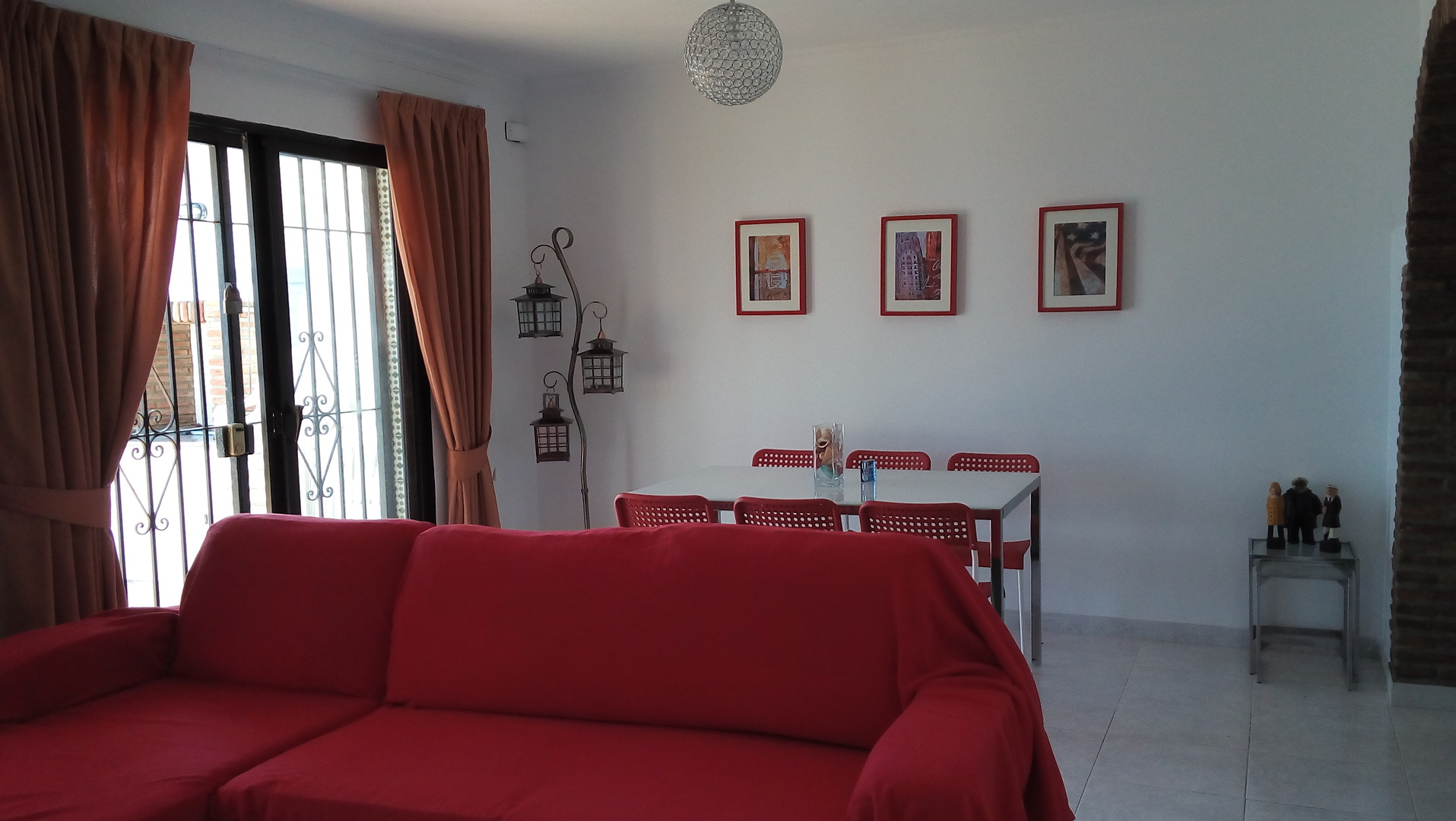La casa tiene capacidad para alojar hasta 5 personas y cuenta con 3 habitaciones y dos baños. Está equipada con todo lo necesario para que su estancia se desarrolle a la perfección incluido WIFI gratuito. Entre ellas: tv plana, aire acondicionado, nevera grande con congelador independiente, horno, menaje de cocina, terraza con barbacoa y patio. Con aparcamiento comunitario en la misma puerta de la casa y piscina comunitaria a 25 metros.