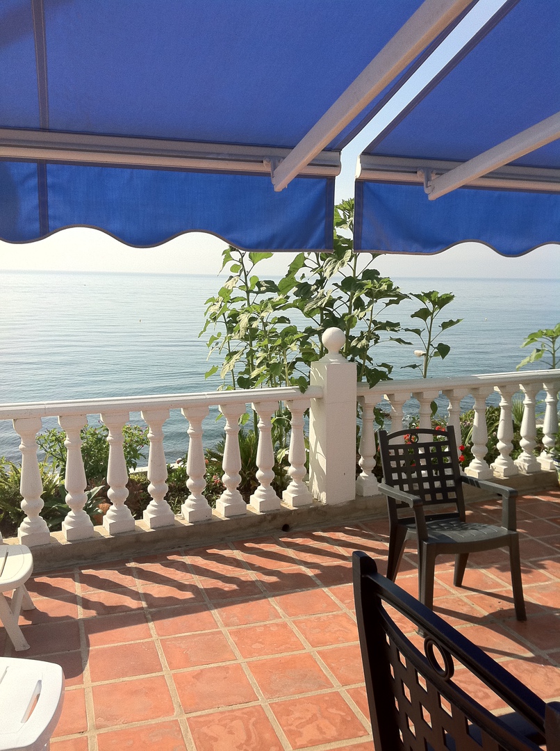 En su terraza con vistas directas al mar podrá disfrutar de maravillosas vistas, incluídas en ocasiones la visión de delfines y de las costas de Africa en días claros.