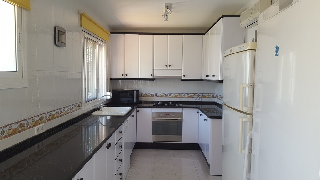 Está equipada con todo lo necesario para que su estancia se desarrolle a la perfección incluido WIFI gratuito. Entre ellas: tv plana, canal satélite, aire acondicionado, nevera grande con congelador independiente, horno, menaje de cocina, con terraza una con vistas al mar y tumbonas y patio ajardinado, toldo, barbacoa y patio. Con aparcamiento comunitario y piscina comunitaria.